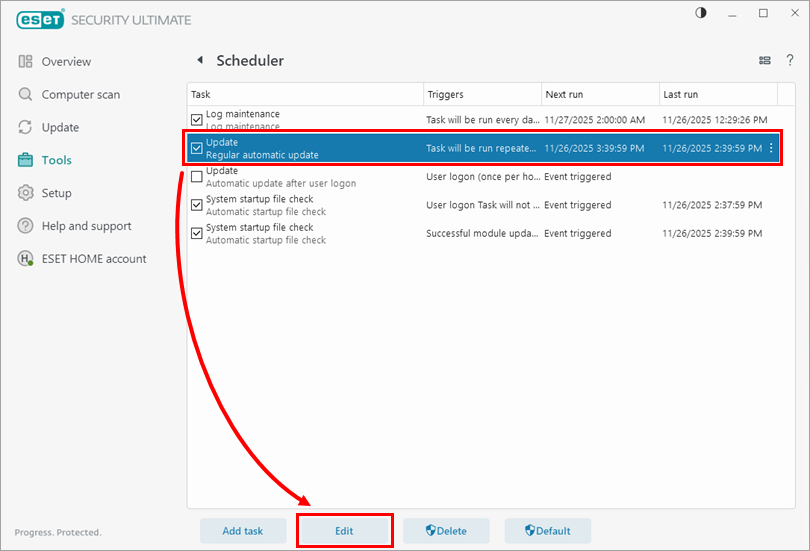 选择 "定期自动更新 "并单击 "编辑"。