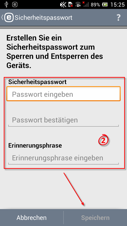 - Nach dem Entsperren Ihres Gerätes legen Sie ein neues Sicherheitspasswort fest.