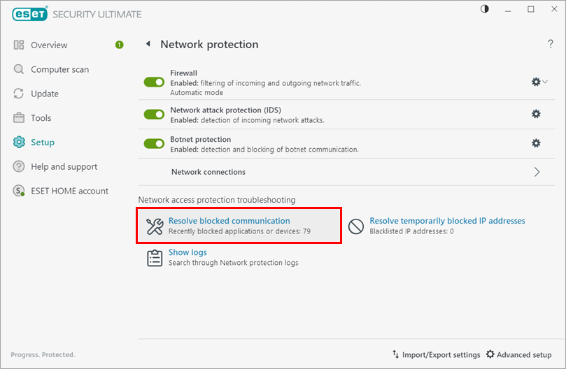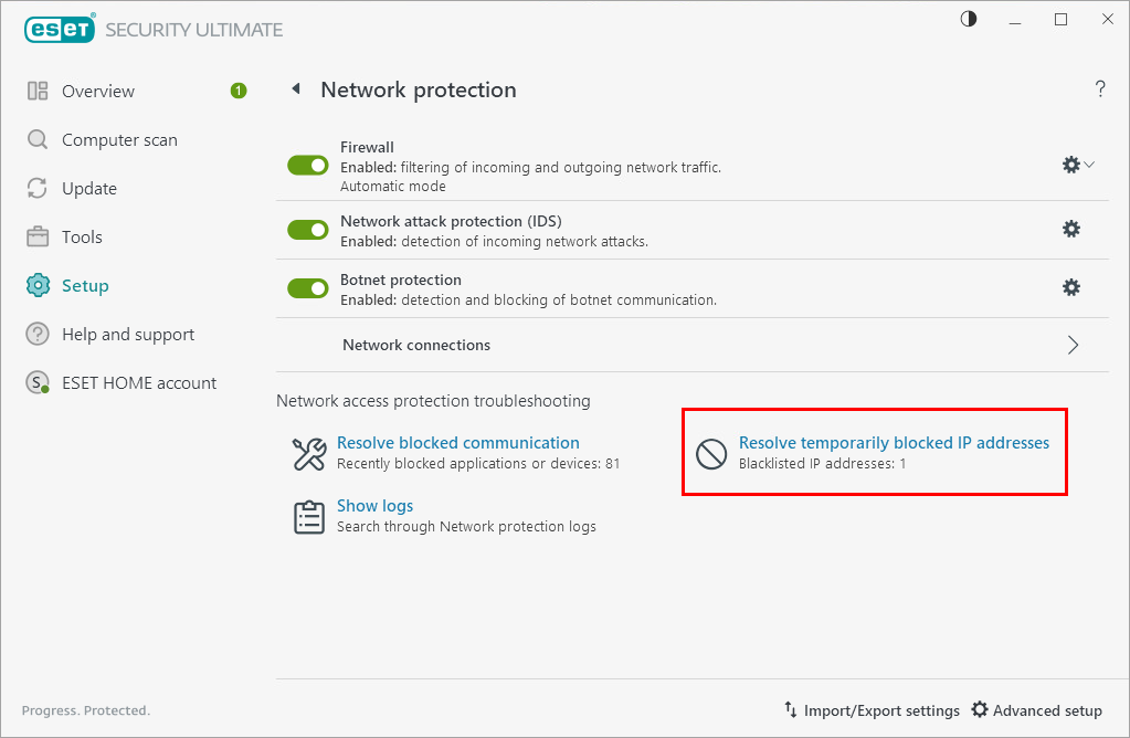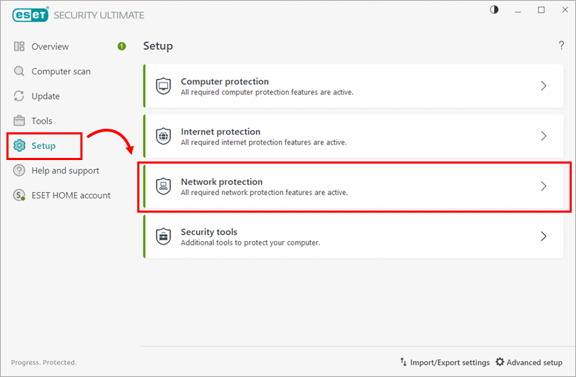 Klicken Sie auf Einrichtung → Netzwerkschutz.