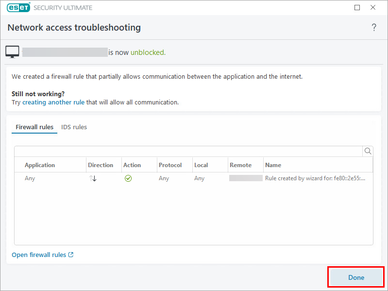 - Die ESET-Firewall blockiert eine Anwendung oder ein Gerät, das sich mit Ihrem Netzwerk verbinden soll