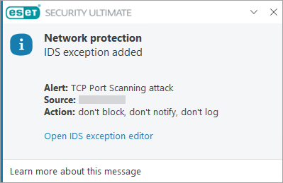 Die IP-Adresse wird aus der Liste der vorübergehend gesperrten IP-Adressen entfernt und in die IDS-Ausnahmeliste aufgenommen.
