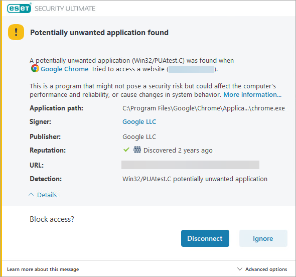 You can configure your ESET product to detect or ignore these types of applications, based on your preference. To remove all applications of this type, ensure that you have configured your ESET product to detect PUAs and then perform a scan with strict cleaning.