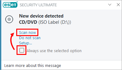 If you enable automatic scanning of removable media devices, the notification will not be displayed, and removable media will be scanned automatically by default.