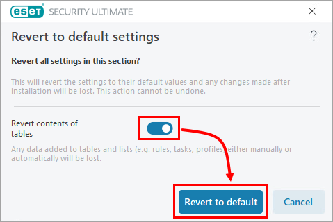 Enable the toggle next to Revert contents of tables and click Revert to default.