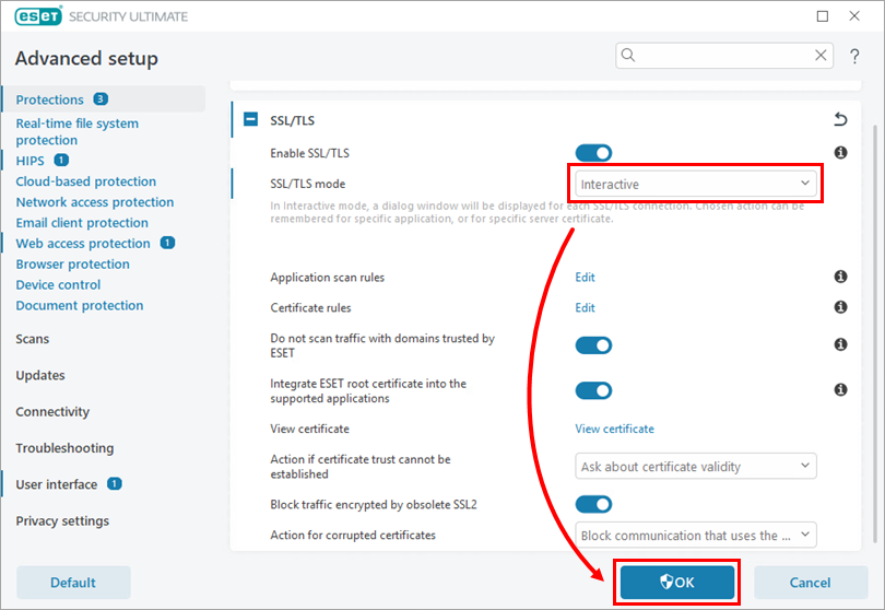 Click the SSL/TLS mode drop-down menu and select Interactive. Click OK.