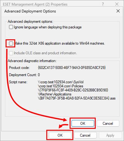 If you are deploying both 64-bit and 32-bit ESET Management Agents, click here