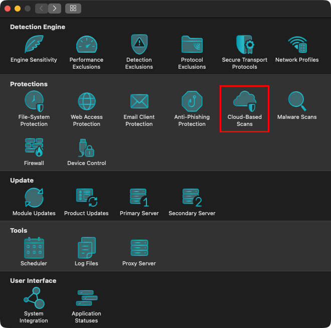 Click ESET Cyber Security in the macOS menu bar (at the top of the screen) and click Settings.