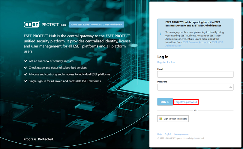 - ESET PROTECT: Forgotten password