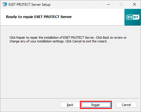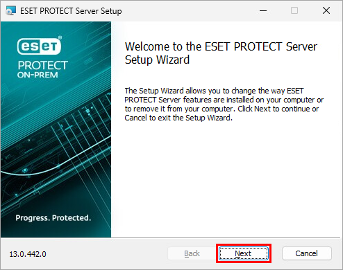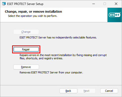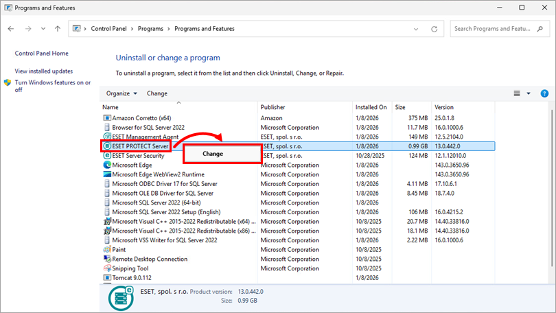 Right-click ESET PROTECT Server and select Change from the context menu.