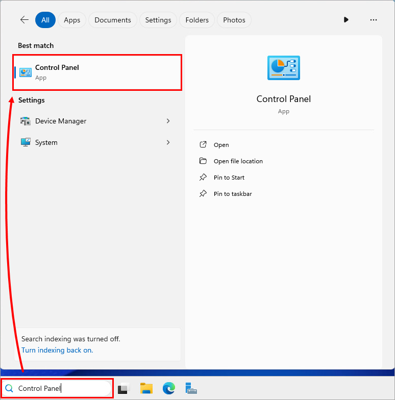Control Panel, then click Control Panel.