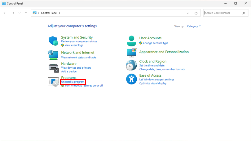 Under Programs, click Uninstall a program.