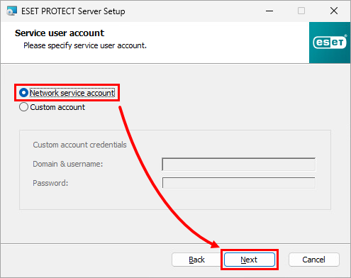 Select Network service account and click Next.
