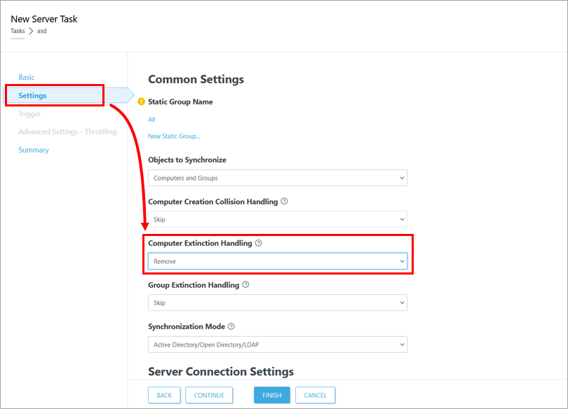 To resolve computer name conflicts (duplicate computers) between computers already present in ESET PROTECT On-Prem and those added via Active Directory synchronization, use the Static Group Synchronization server task: