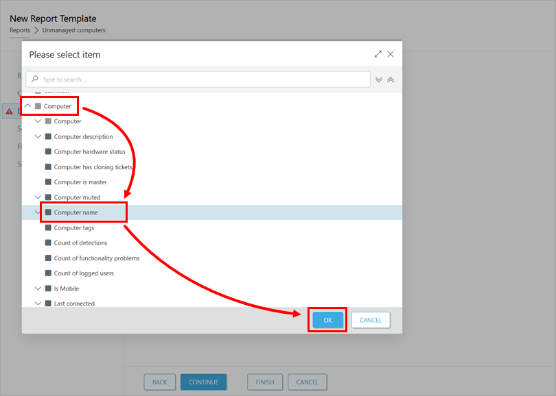 Select the check box next to Computers and click OK.