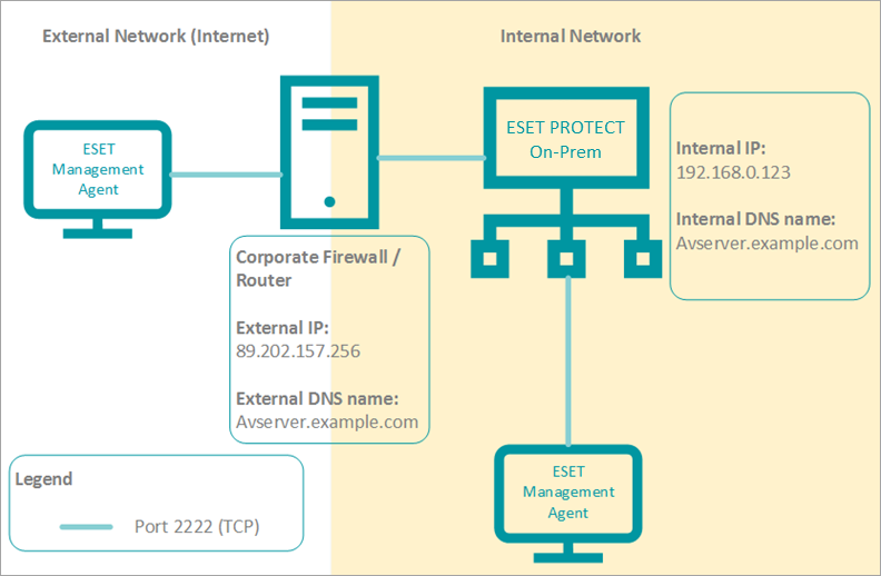 - Allow both internal and external (remote) clients to communicate with the ESET PROTECT On-Prem server