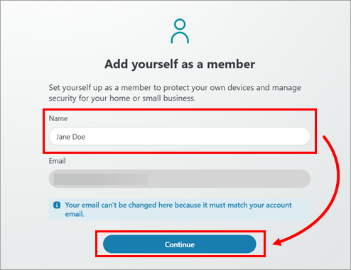 On the Add yourself as a member screen, type your name and click Continue.