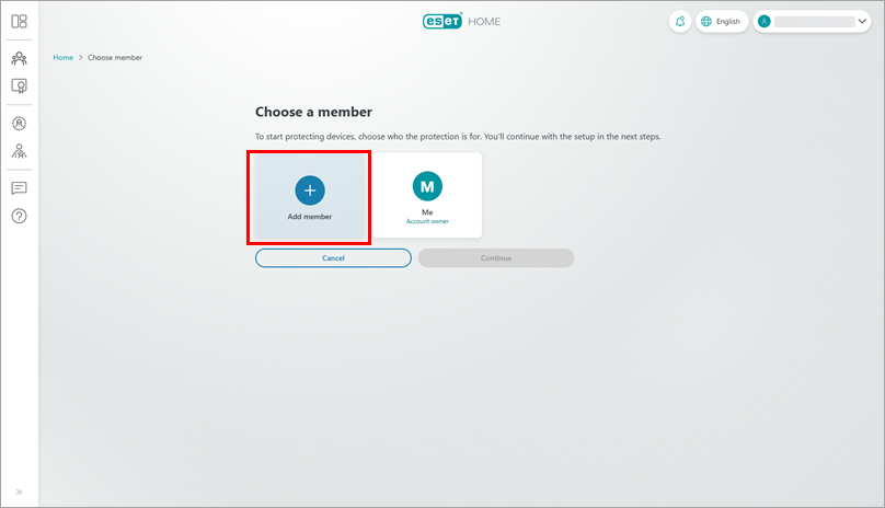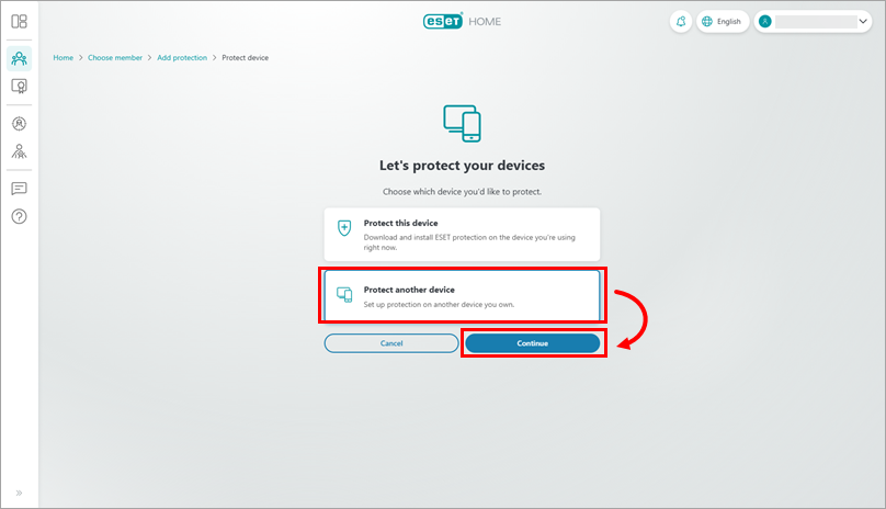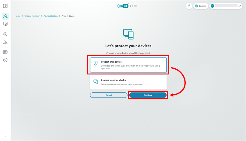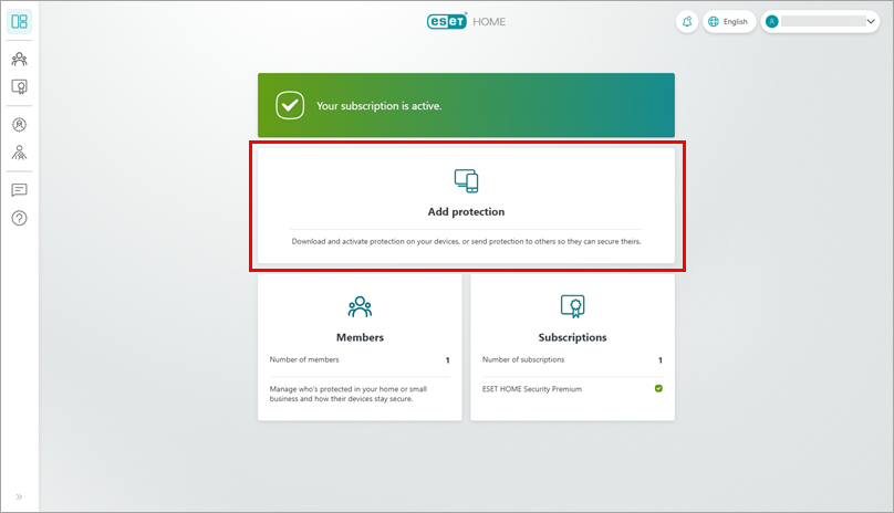On the overview page of ESET HOME, click Add protection.