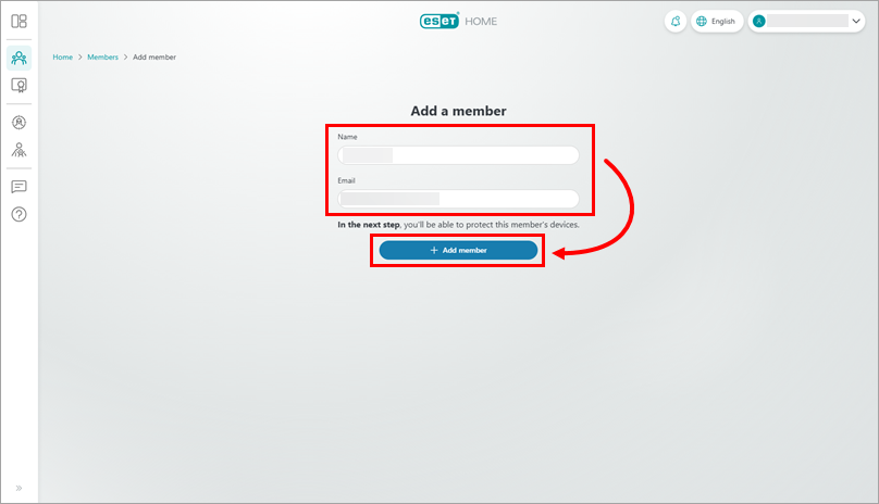 Type the member's name and email address and click Add member.