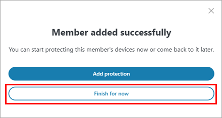 Click Finish for now. Alternatively, click Add protection to share the protection with the member.