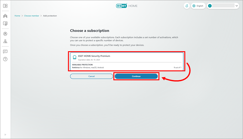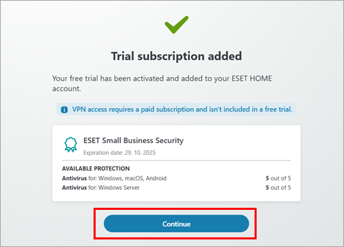 The new subscription is automatically added to your ESET HOME account.