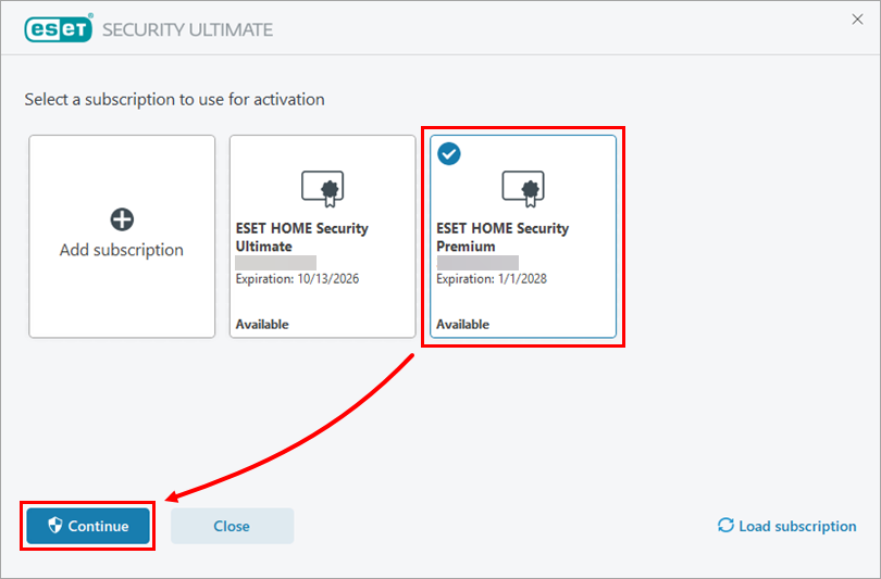 You need to change the currently activated subscription in your ESET Windows home and small office product