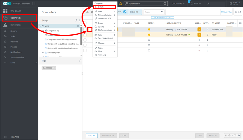 Click Computers, then click the three dots next to the target computer and select Details.