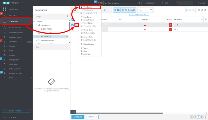 Click Computers, then click the three dots next to the target computer and select View Details.