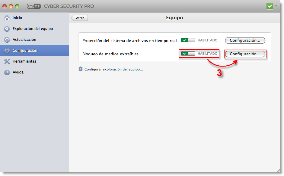 - Bloquear el acceso a su equipo por parte de medios removibles como unidades USB, CD-ROM o dispositivos iOS
