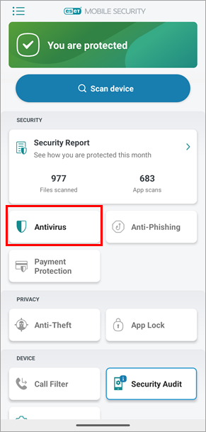 La Protección en tiempo real es la primera capa de protección que ESET Mobile Security para Android utiliza para disuadir amenazas sin que el usuario tenga que realizar ninguna acción.
