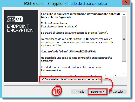 - Seleccione el casillero Compruebe si la información anterior es correcta y haga clic en Siguiente.