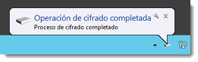 Use su equipo normalmente (por ejemplo, reinicio, apagado, etc.) durante el proceso de cifrado. La barra del Estado de cifrado del disco mostrará el progreso. Cuando finalice el cifrado, aparecerá la notificación: