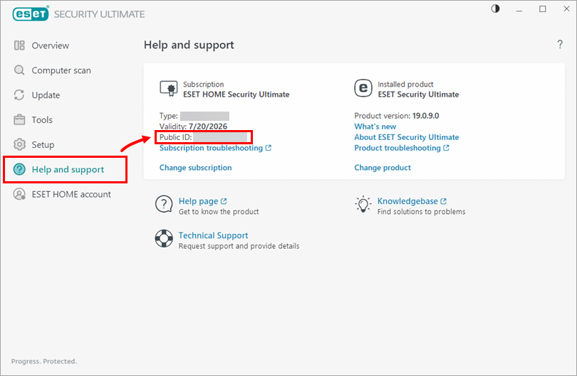 - Localiser l'ID public pour soumettre une demande de support technique ESET dans le produit ESET Windows home and small office
