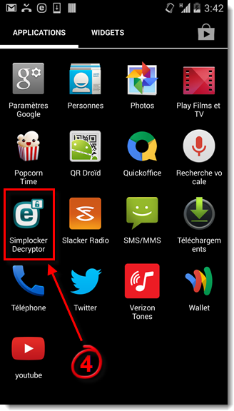 Appuyez l'icône Simplocker Decryptor sur votre écran des applications.