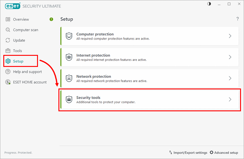 Ouvrez la fenêtre du programme principal de votre produit ESET Windows home ou small office.