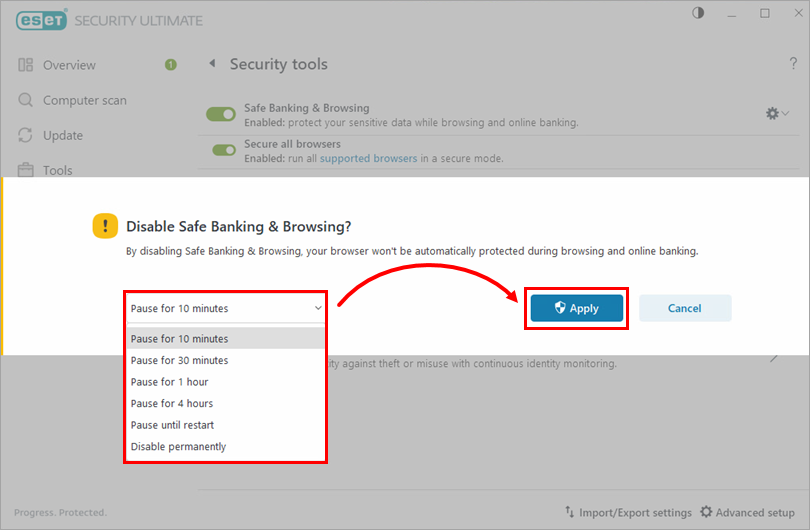 - Mettre en pause ou désactiver Safe Banking & Browsing