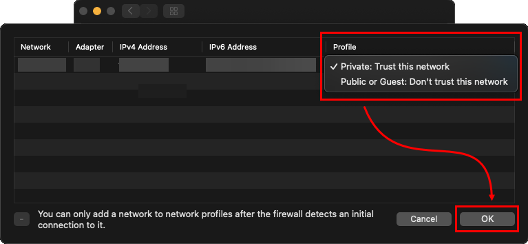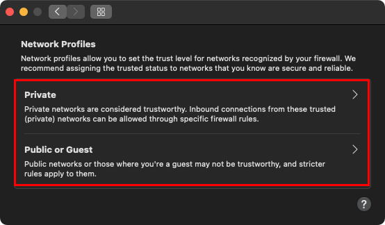 There are two profiles you can choose from in the Your device is connecting to a new network window window: