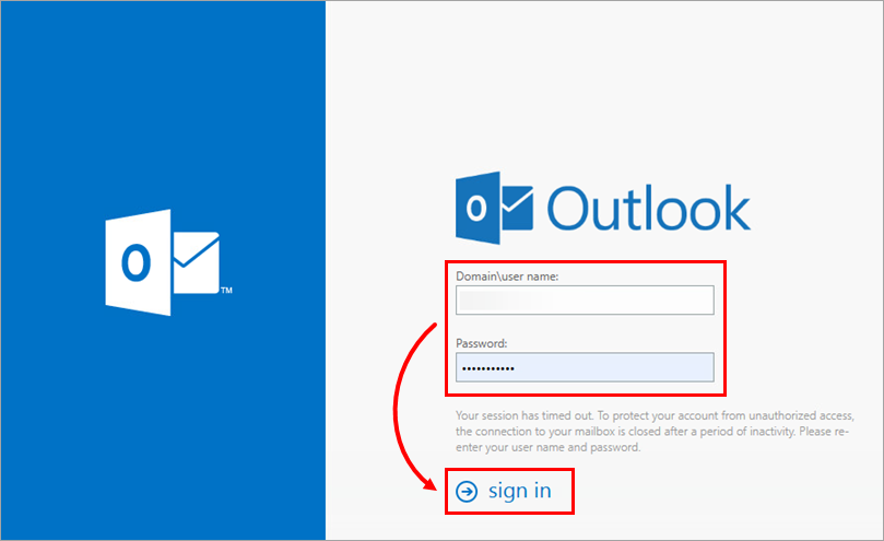 On your computer, access Outlook Web Access (OWA) as directed by your administrator. Type your Microsoft Exchange username and password into the Outlook login screen and click sign in.
