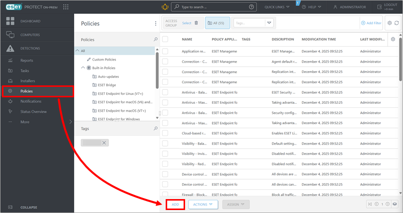 - Create and apply a policy to redirect ESET Management Agents to the new ESET PTORECT Server