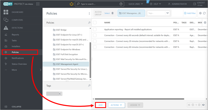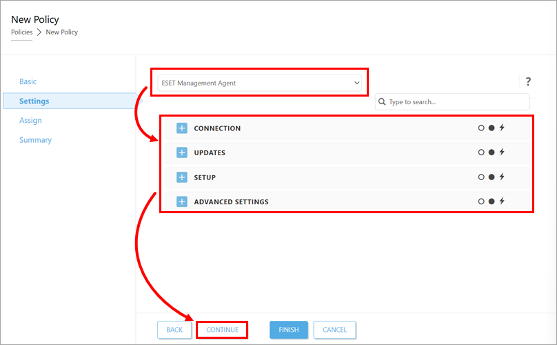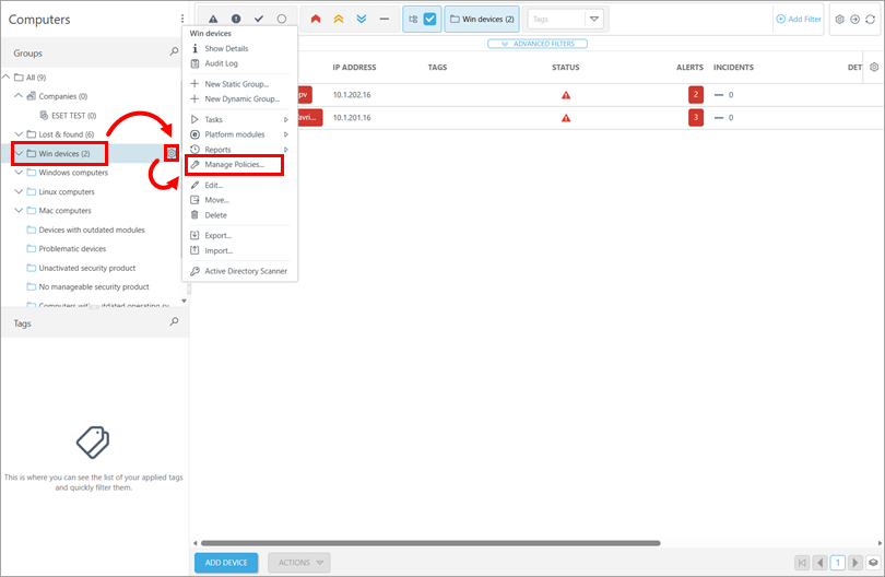 - Create a policy in ESET PROTECT or ESET PROTECT On-Prem and assign it to a group