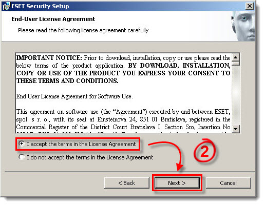 Zaznacz pole wyboru obok Włącz system wczesnego ostrzegania ThreatSense.Net, jeśli chcesz wziąć udział w programie, a następnie kliknij Next.