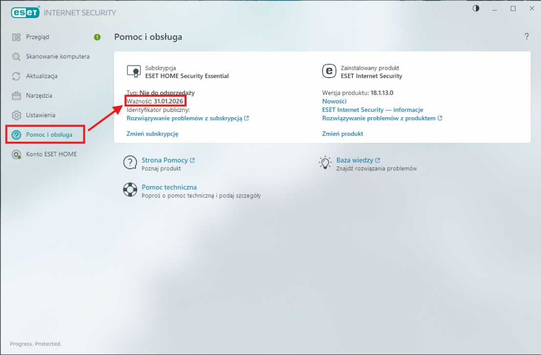 - Sprawdzenie daty wygaśnięcia subskrypcji w produkcie ESET.