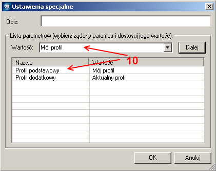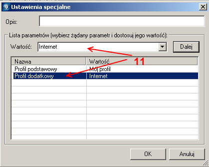 11. Wybierz Profil dodatkowy, następnie wybierz