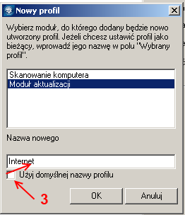 3. W oknie Nowy profil, odznacz pole obok Użyj domyślnej nazwy profilu, wpisz nazwę w polu Nazwa nowego profilu i kliknij OK.