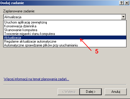 5. Wybierz Aktualizacja z listy Zaplanowane zadanie i klikamy Dalej.