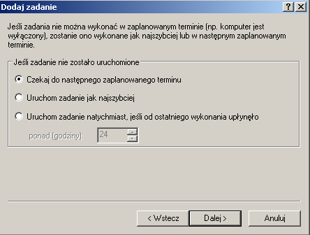 8. Upewnij się, że zaznaczona jest pozycja "Czekaj do następnego zaplanowanego terminu" i kliknij Dalej.