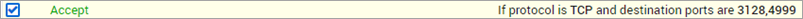 When using the ESET PROTECT Virtual Appliance, use Webmin to add port 4449 to the rule where 3128 is already listed, and save the configuration.