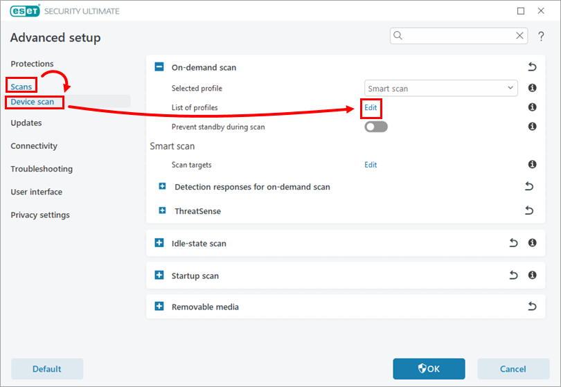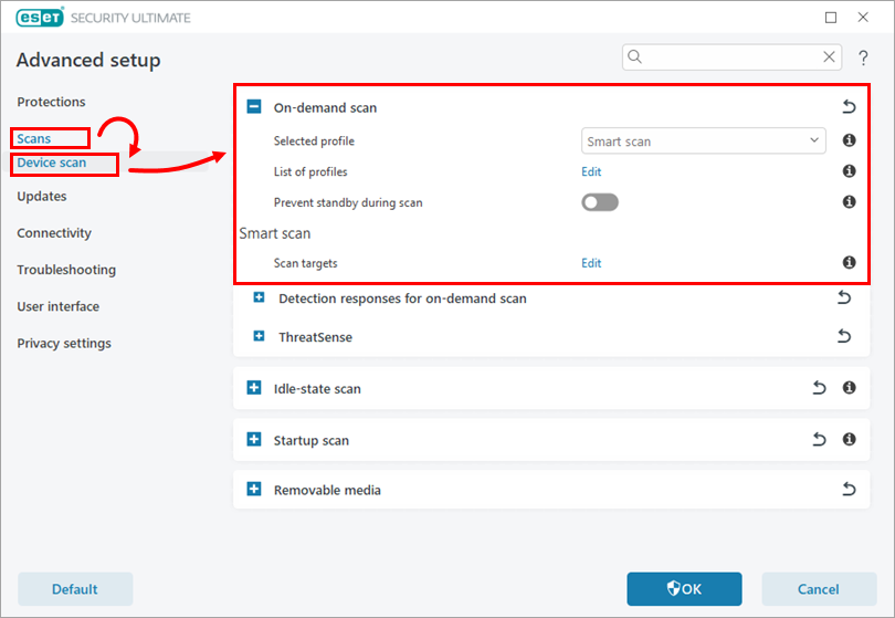 Click Scans → Device scan, and expand the section On-demand scan.
