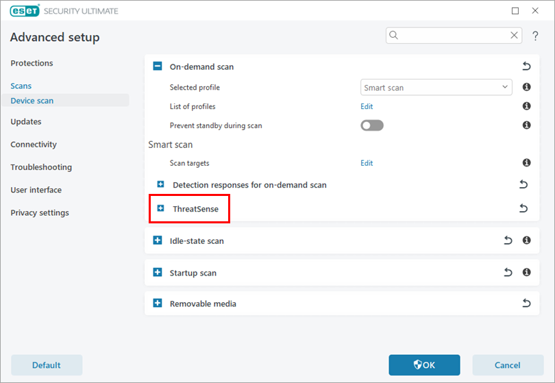 Expand ThreatSense to show the settings in this section.