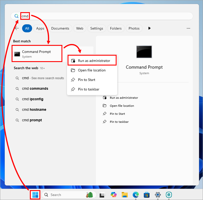 cmd. Faceți clic dreapta pe Prompt de comandă și faceți clic pe Executare ca administrator.