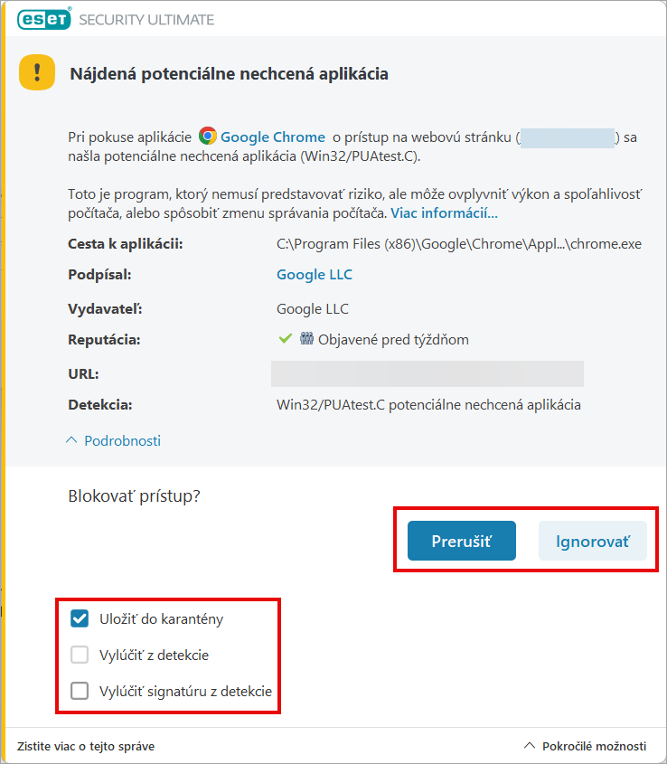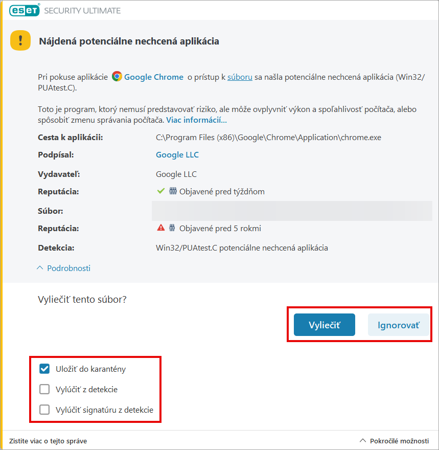 - Ignorovať: potenciálne nechcená aplikácia bude môcť zostať v počítači.